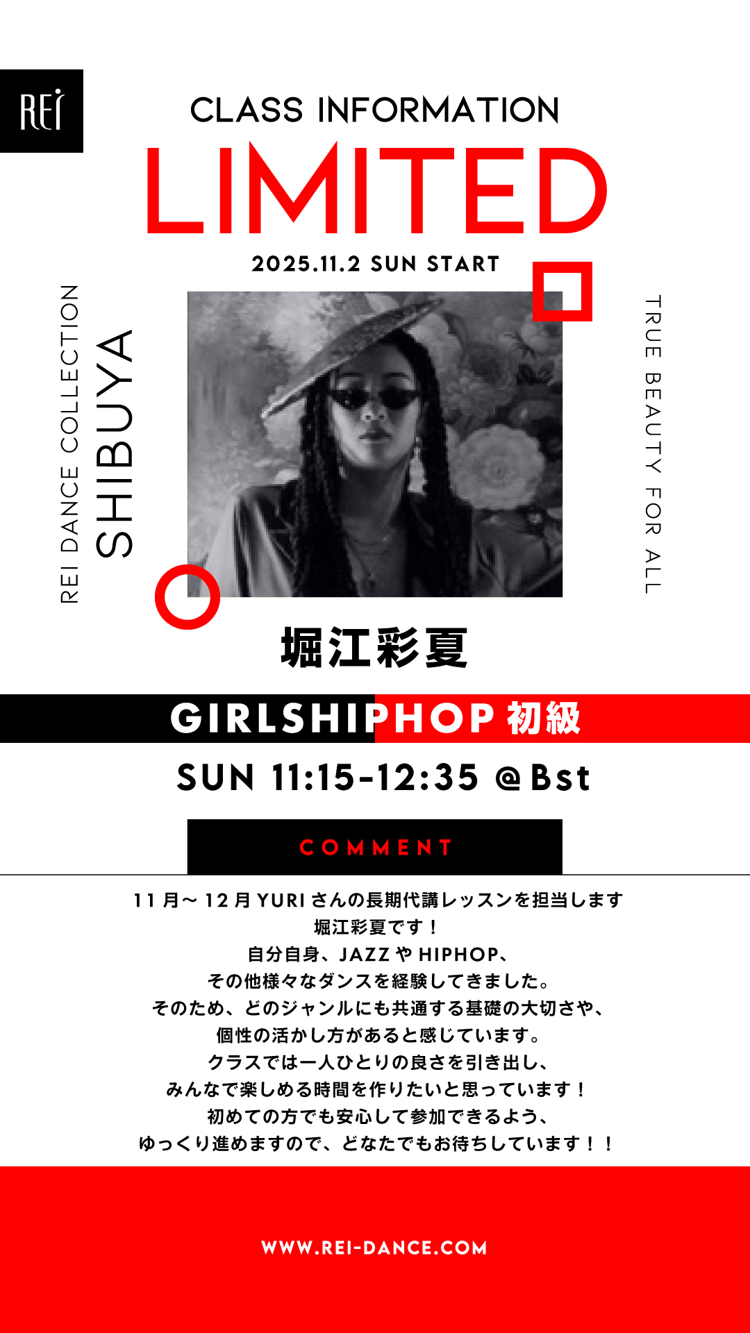 ▼(日)11:15-12:35 堀江彩夏/GIRLSHIPHOP初級