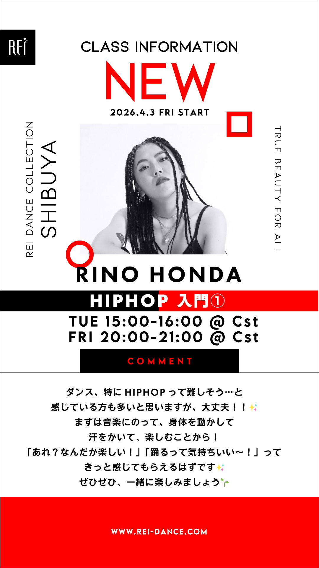 ▼(火)15:00-16:00 RINO HONDA/HIPHOP入門①