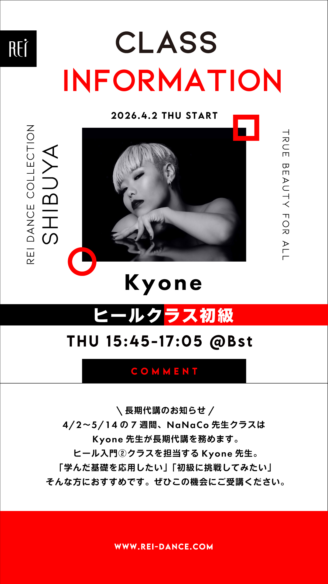 ▼(木)15:45-17:05 Kyone/ヒールクラス初級