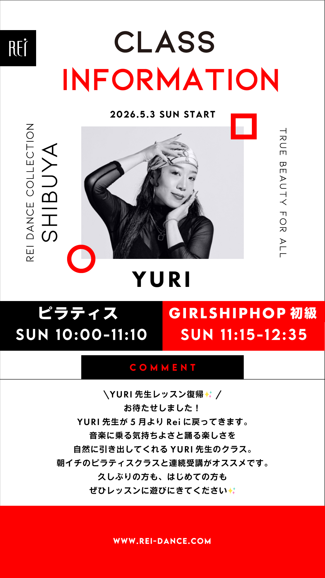 ▼(日)11:15-12:35 YURI/GIRLSHIPHOP初級