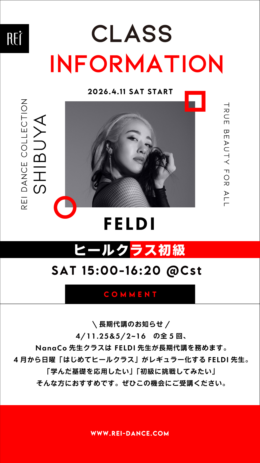 ▼(土)15:00-16:20 FELDI/ヒールクラス初級