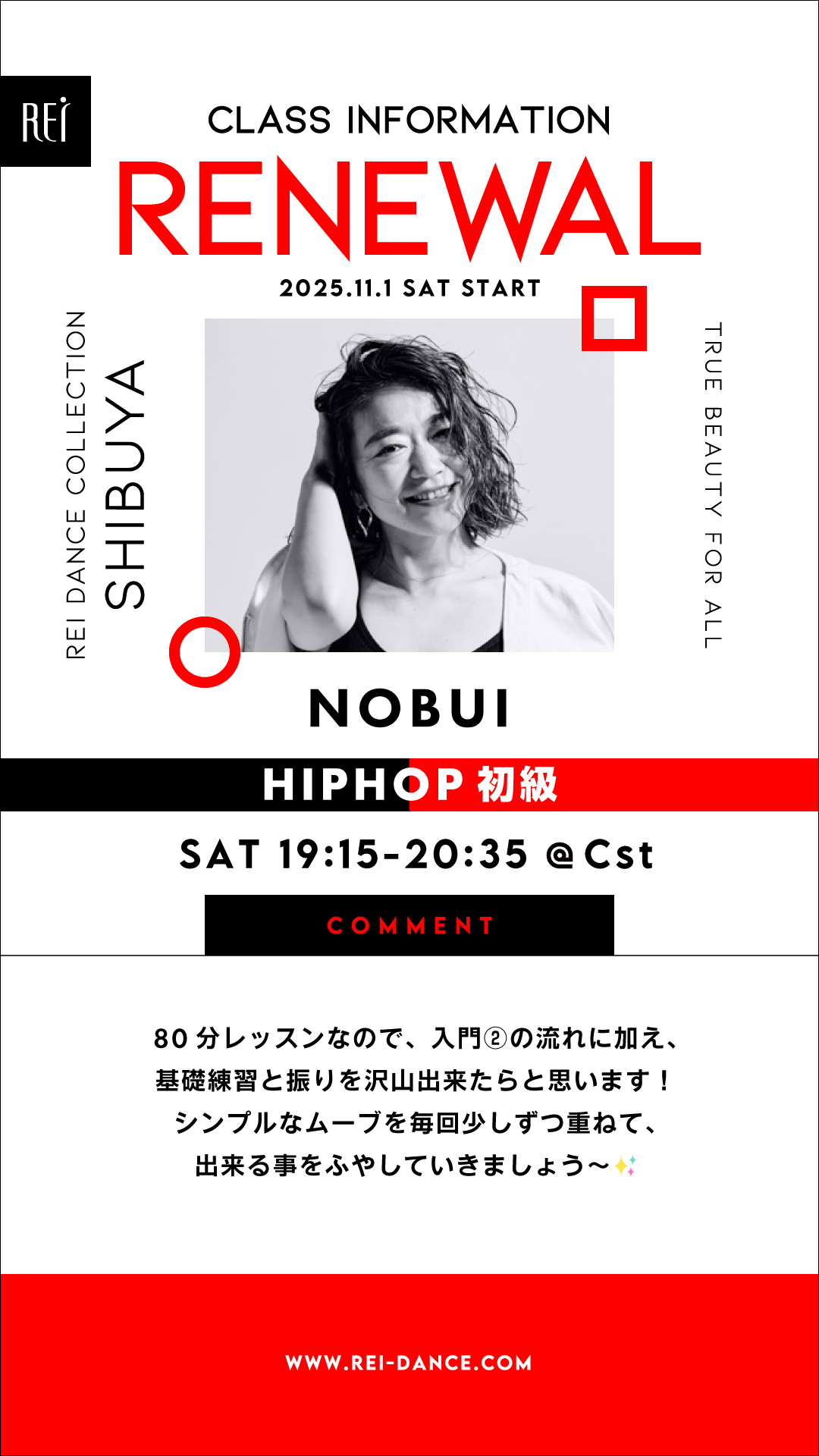 ▼(土)19:15-20:35 NOBUI/HIPHOP初級