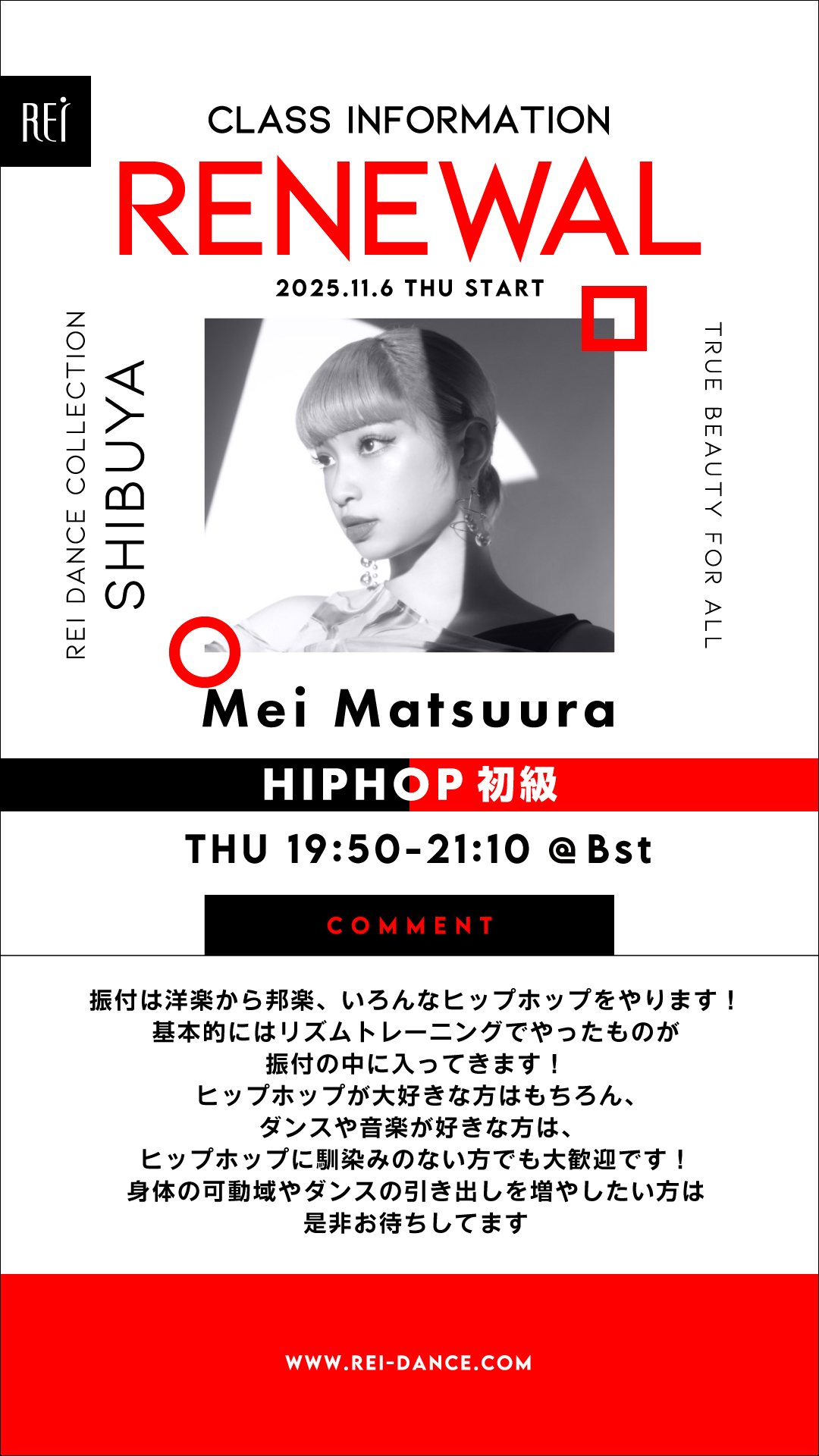 ▼(木)19:50-21:10 Mei Matsuura/HIPHOP初級