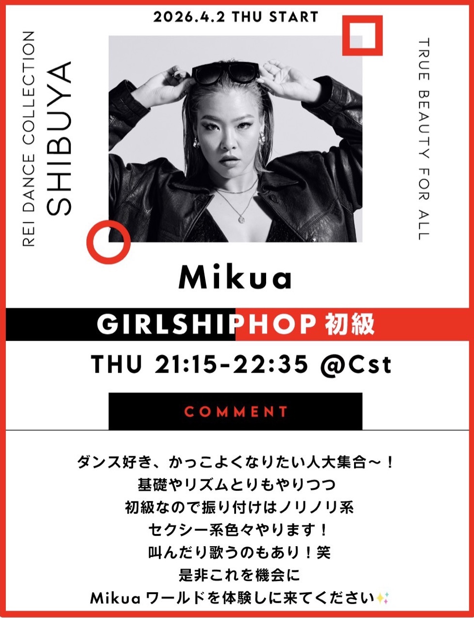 ▼(木)21:15-22:35 Mikua/GIRLSHIPHOP初級