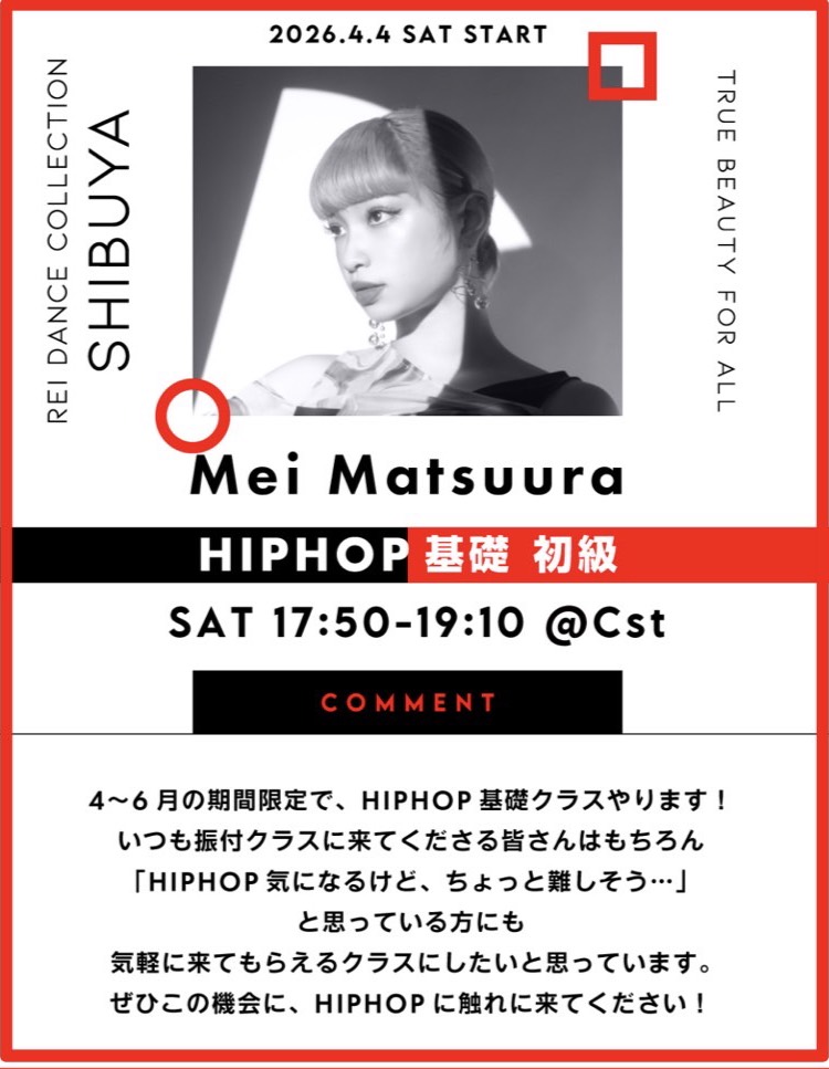 ▼(土)17:50-19:10 Mei Matsuura/HIPHOP基礎 初級
