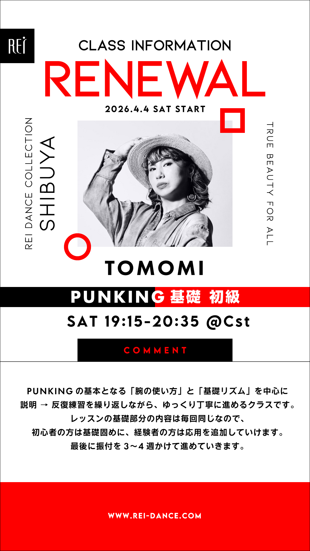 ▼(土)19:15-20:35 TOMOMI/PUNKING基礎 初級