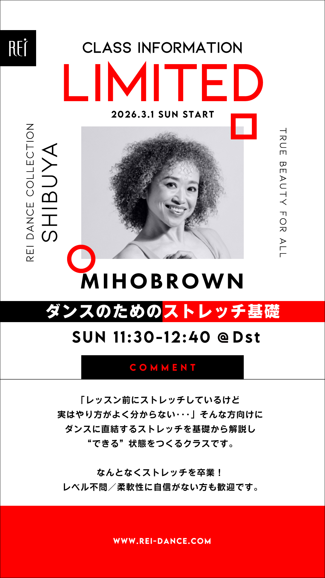 ▼(日)11:30-12:40 MIHOBROWN/ダンスのためのストレッチ基礎