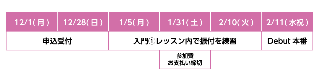 A. 1月5日(月)〜2月10日(火)のレッスンで振付を進めていきます。