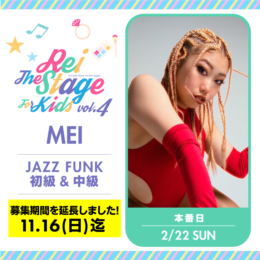 【Rei The Stage for Kids vol.4】JAZZFUNK初級&中級 MEIナンバー情報