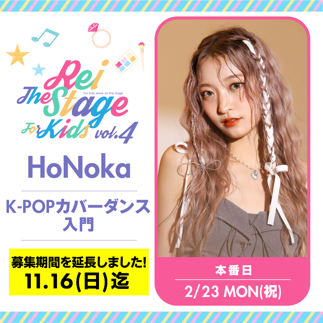 【Rei The Stage for Kids vol.4】K-POPカバーダンス入門 HoNokaナンバー情報