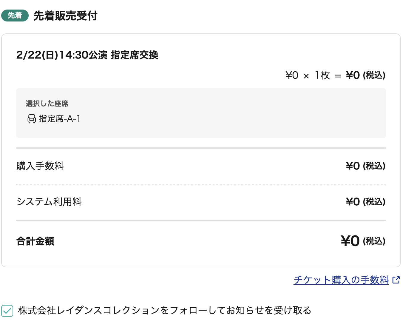 ・自由席チケット (※指定席に交換する公演分の枚数)
