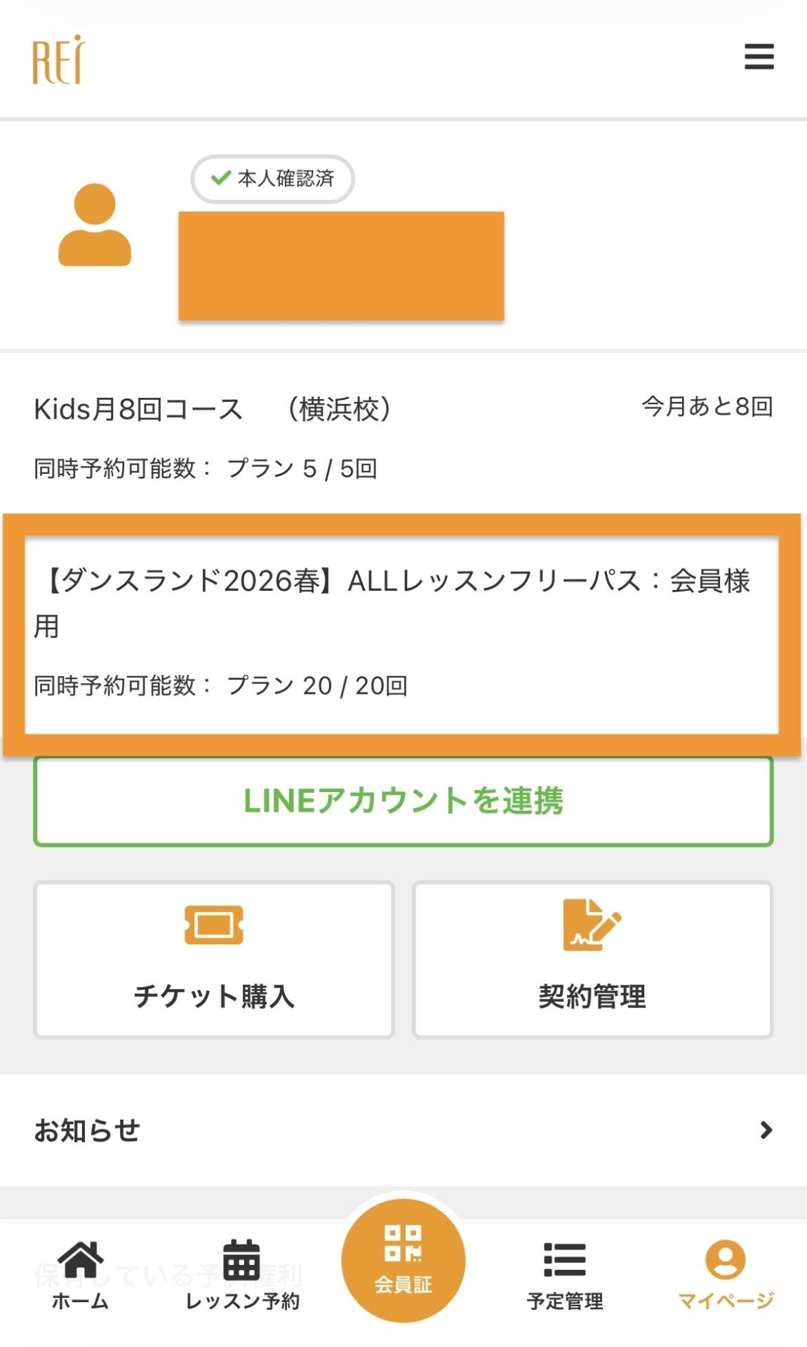 マイページを見ていただき、ダンスランドプランが表示されていましたらご予約が可能になっております。