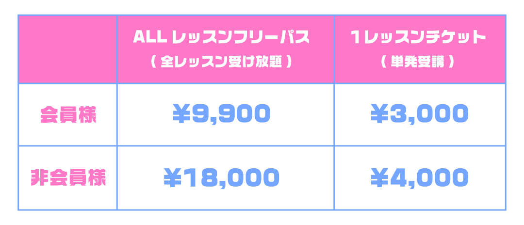 ◎全てのレッスンに撮影が入ります。撮影した映像はSNSやプロモーションに利用しますので、予めご了承ください。