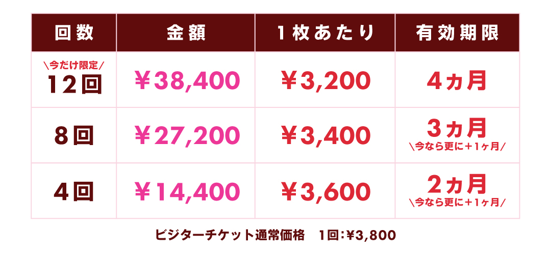 通常は販売していない12回チケットが、キャンペーン期間中のみ登場✨