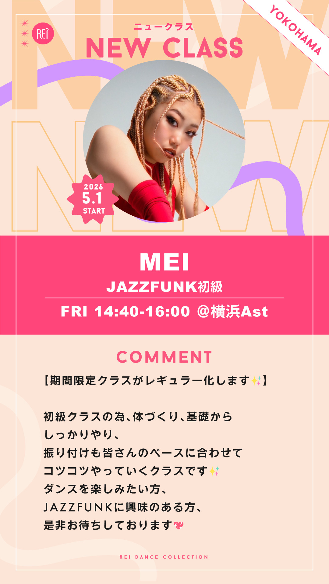 【5/1(金)スタート】MEI / JAZZFUNK初級 (金)14:40-16:00@横浜Ast