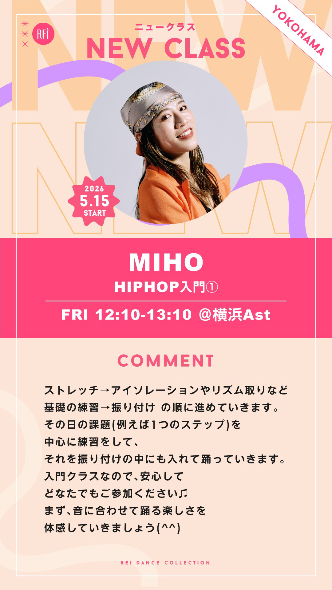 【5/15(金)スタート】MIHO / HIPHOP入門① (金)12:10-13:10@横浜Ast
