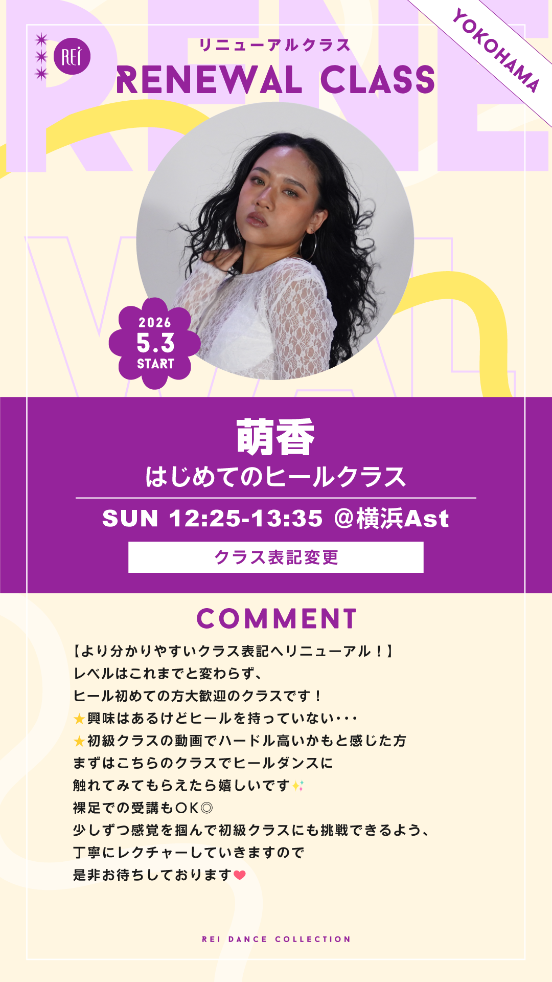 【5/3(日)スタート】萌香 / はじめてのヒールクラス (日)12:25-13:35@横浜Ast