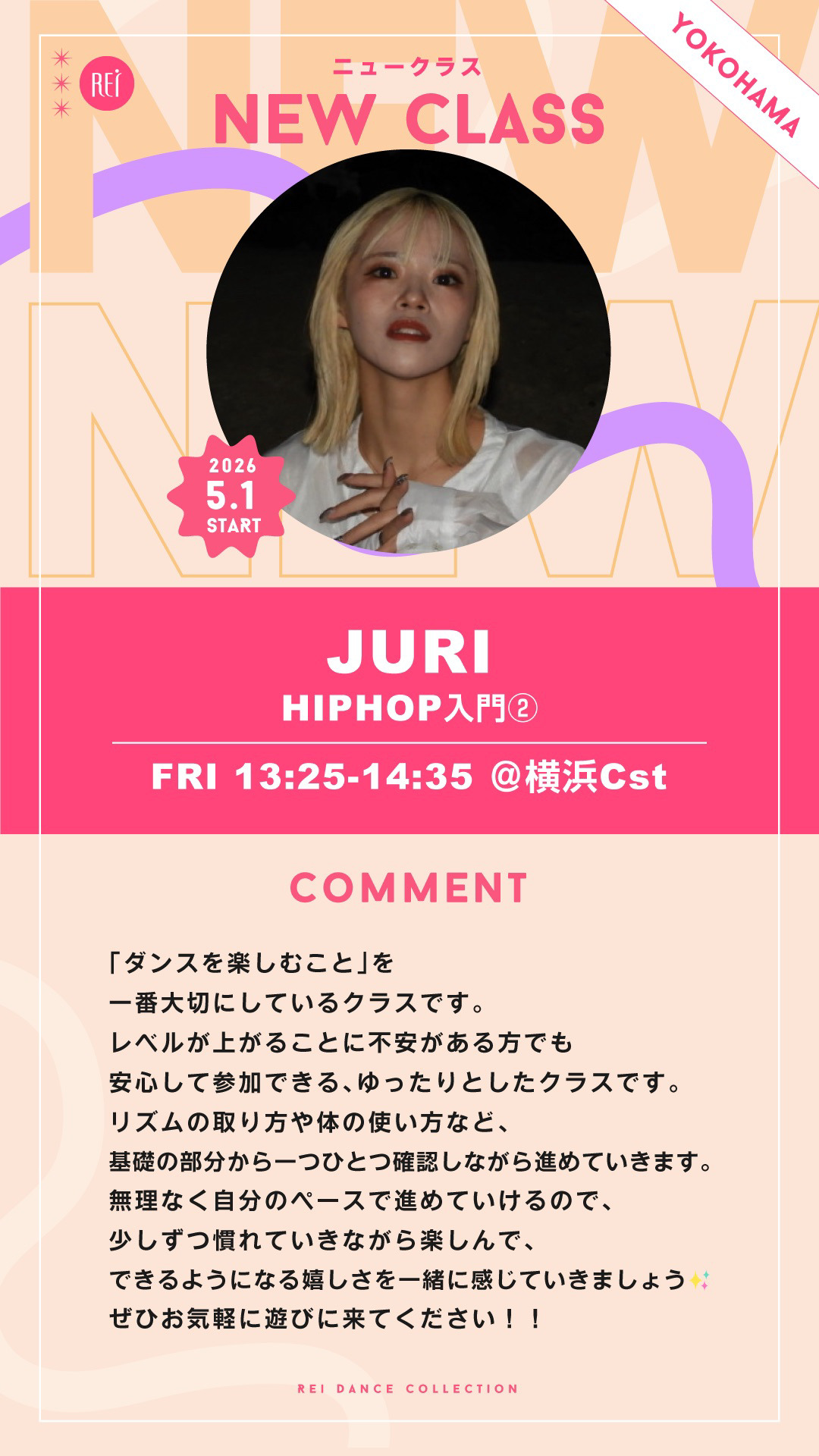 【5/1(金)スタート】JURI / HIPHOP入門② (金)13:25-14:35@横浜Cst