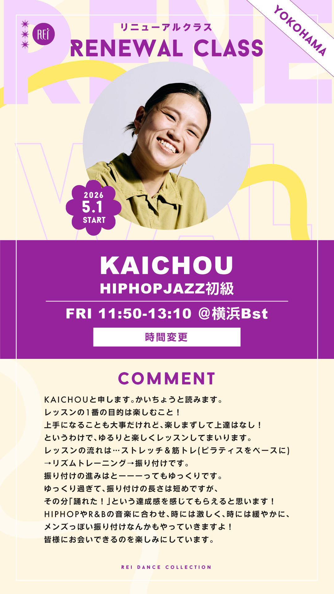 【5/1(金)スタート】KAICHOU / HIPHOPJAZZ初級 (金)11:50-13:10@横浜Bst