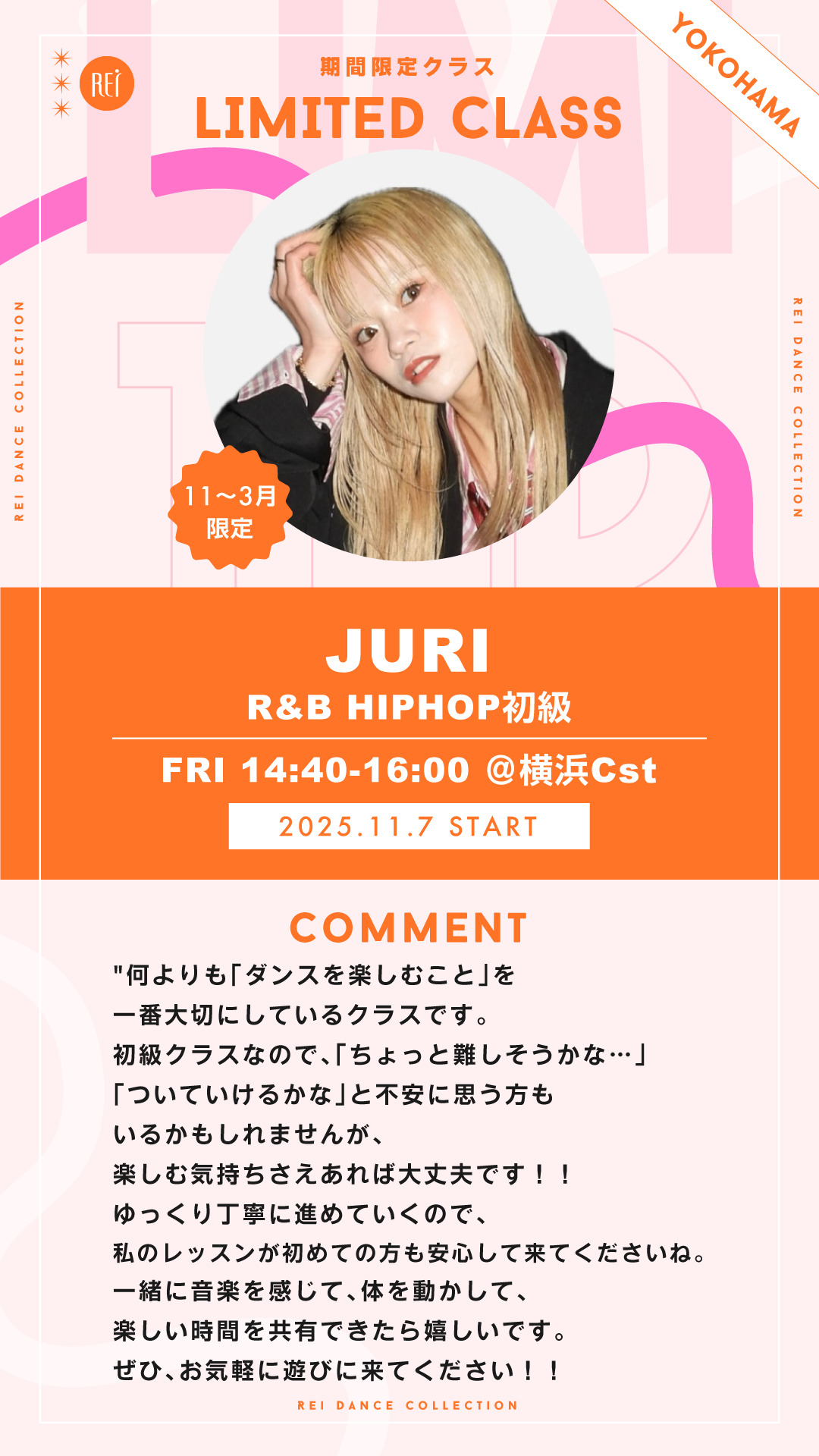 【11~3月期間限定】JURI / R&B HIPHOP初級 (金)14:40-16:00@横浜Cst